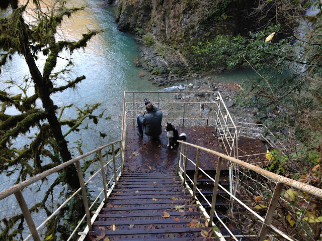 В конце дороги крутой оборудованный спуск к подножию водопада.