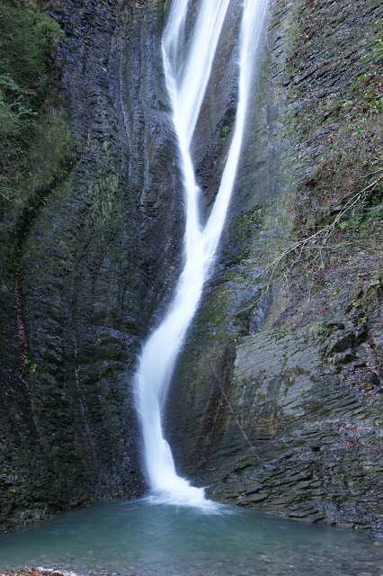 На прошлых выходных поехали посмотреть самый известный и красивый водопад города. Находится он в 14 км от моря недалеко от хутора Ореховский на речке Безуменке при впадении ее в реку Сочи. Его высота 27,5 метра! Дорога к нему ведет по дубово-каштановому лесу длиною в 1,5 км от конечной остановки маршрута №102.