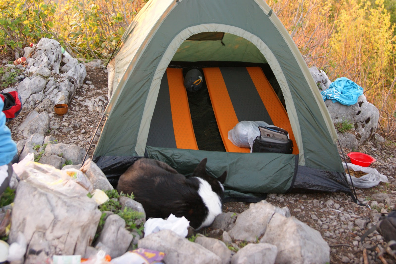 | Площадка на вершине очень мала, с трудом хватило места под палатку |