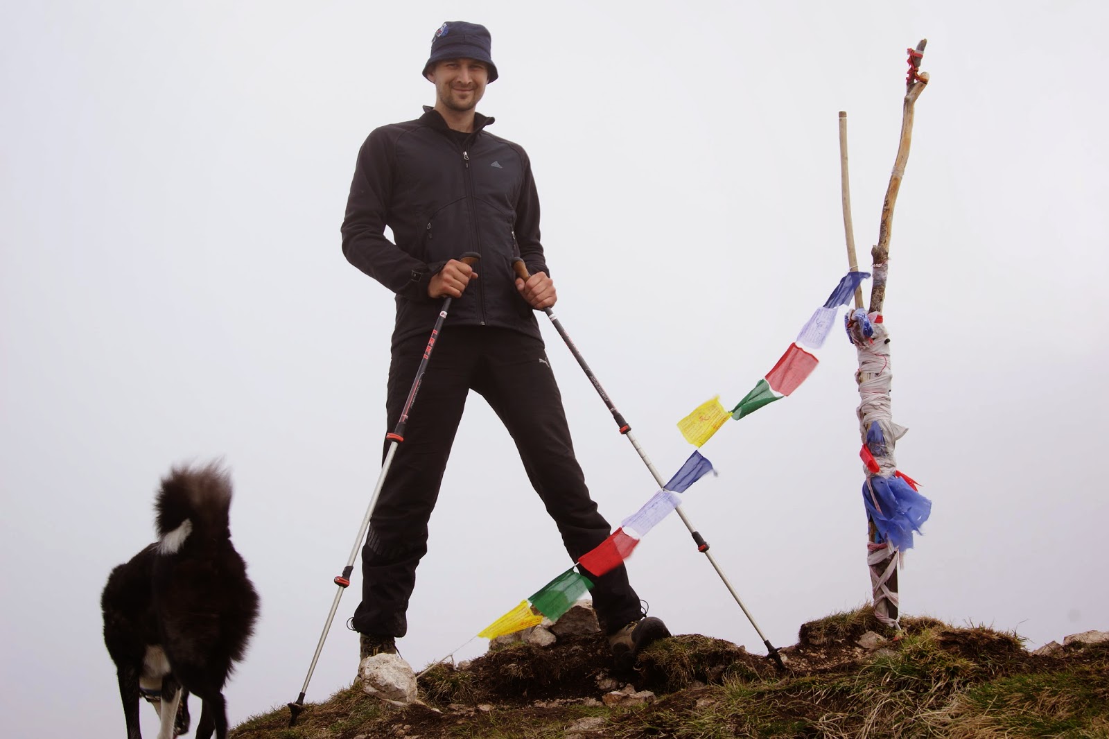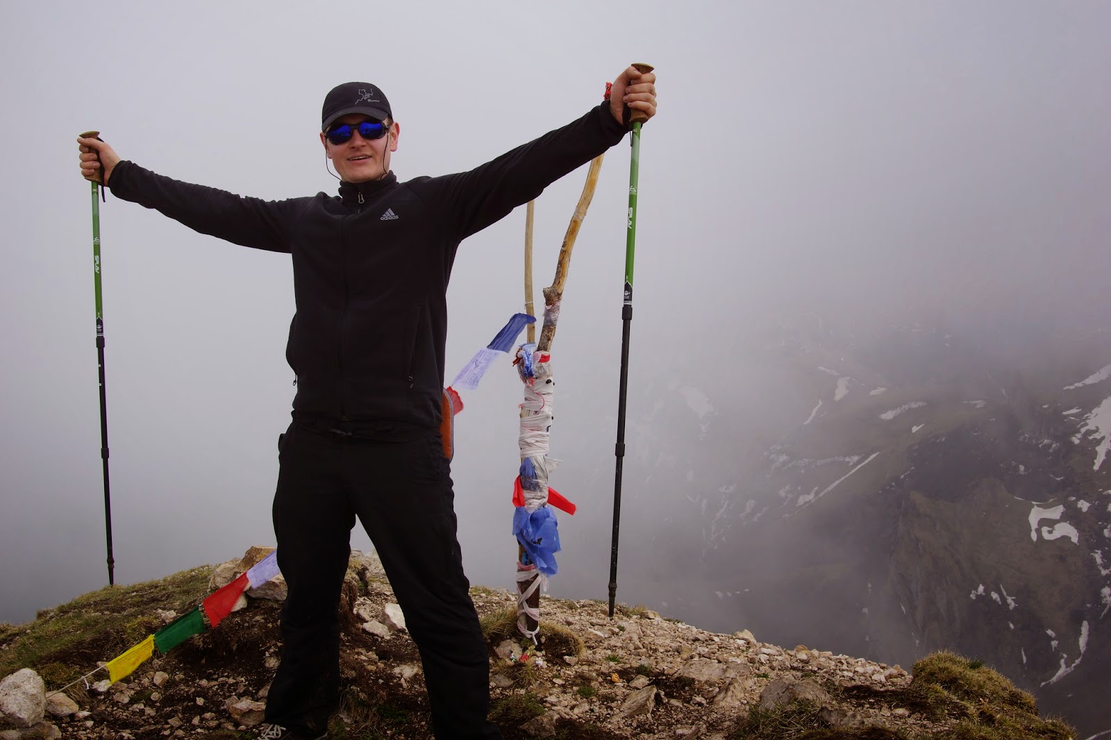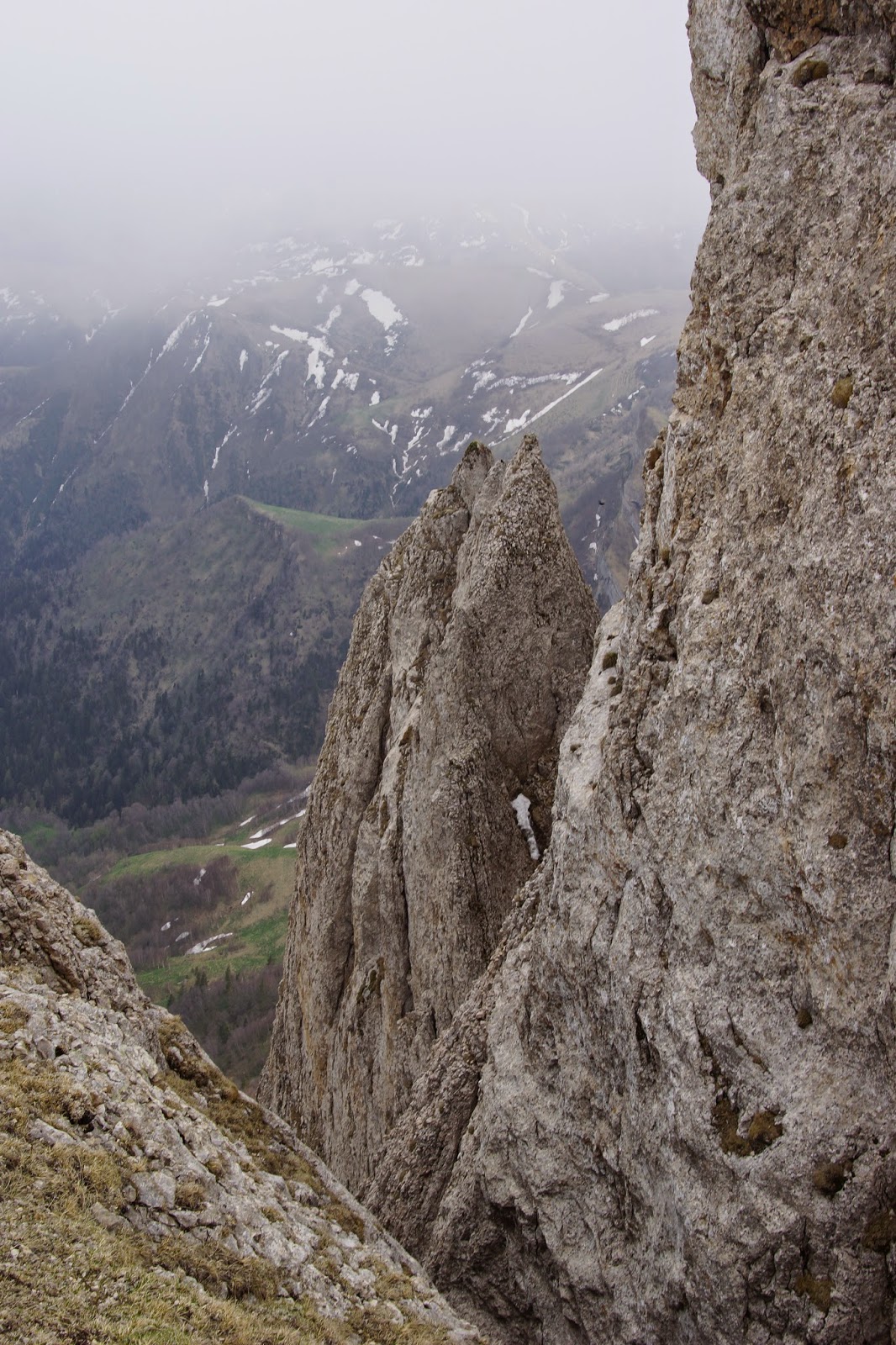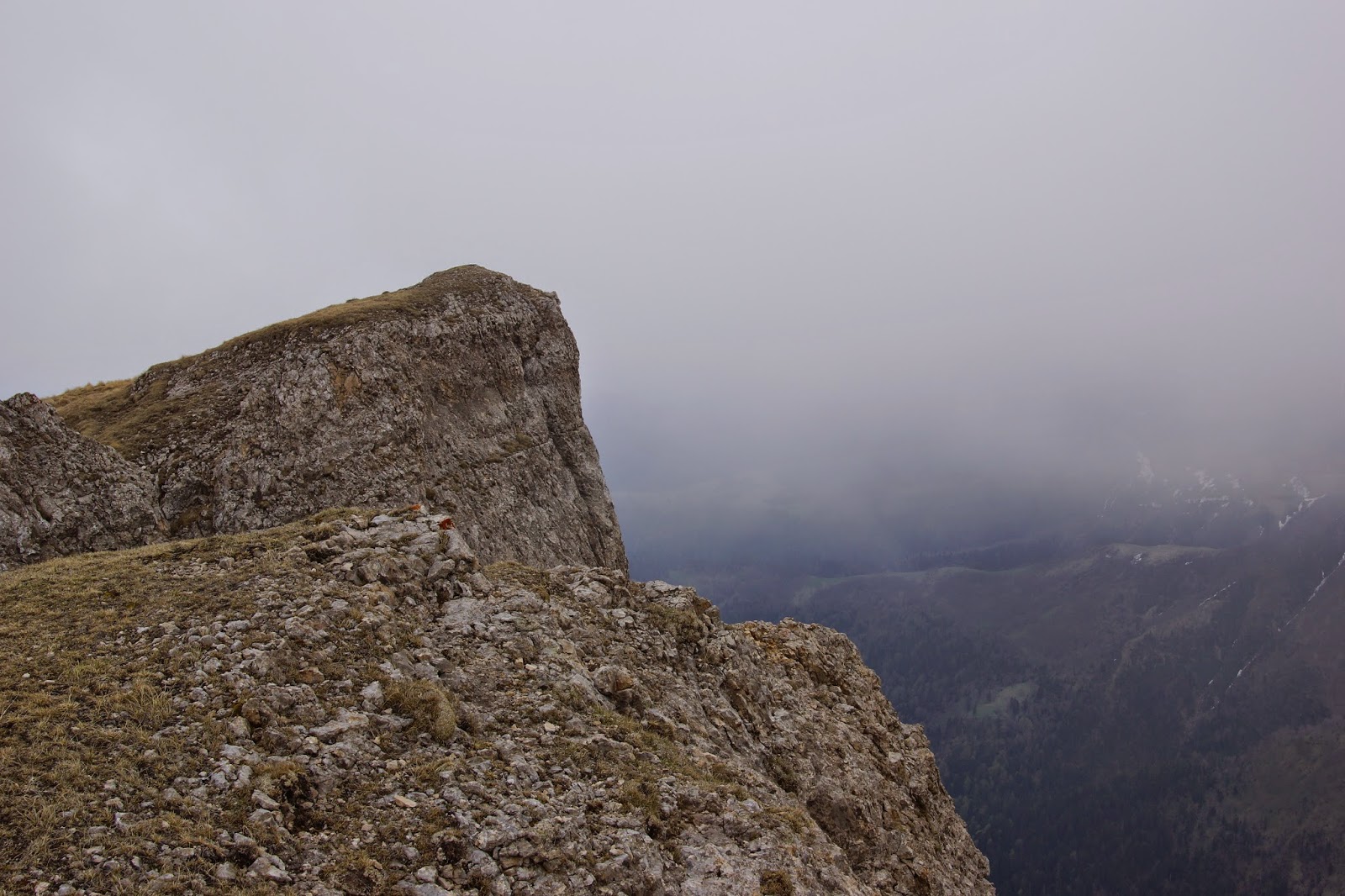 Отдохнув на вершине минут 20 начинаем спуск, а Тхач тем временем все больше начинает затягивать туман.