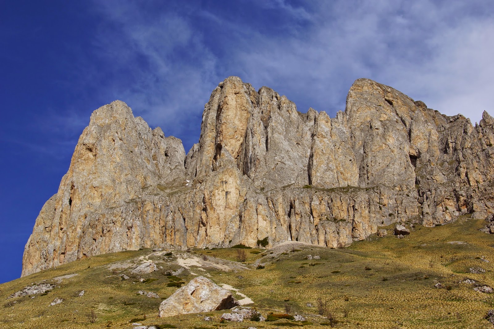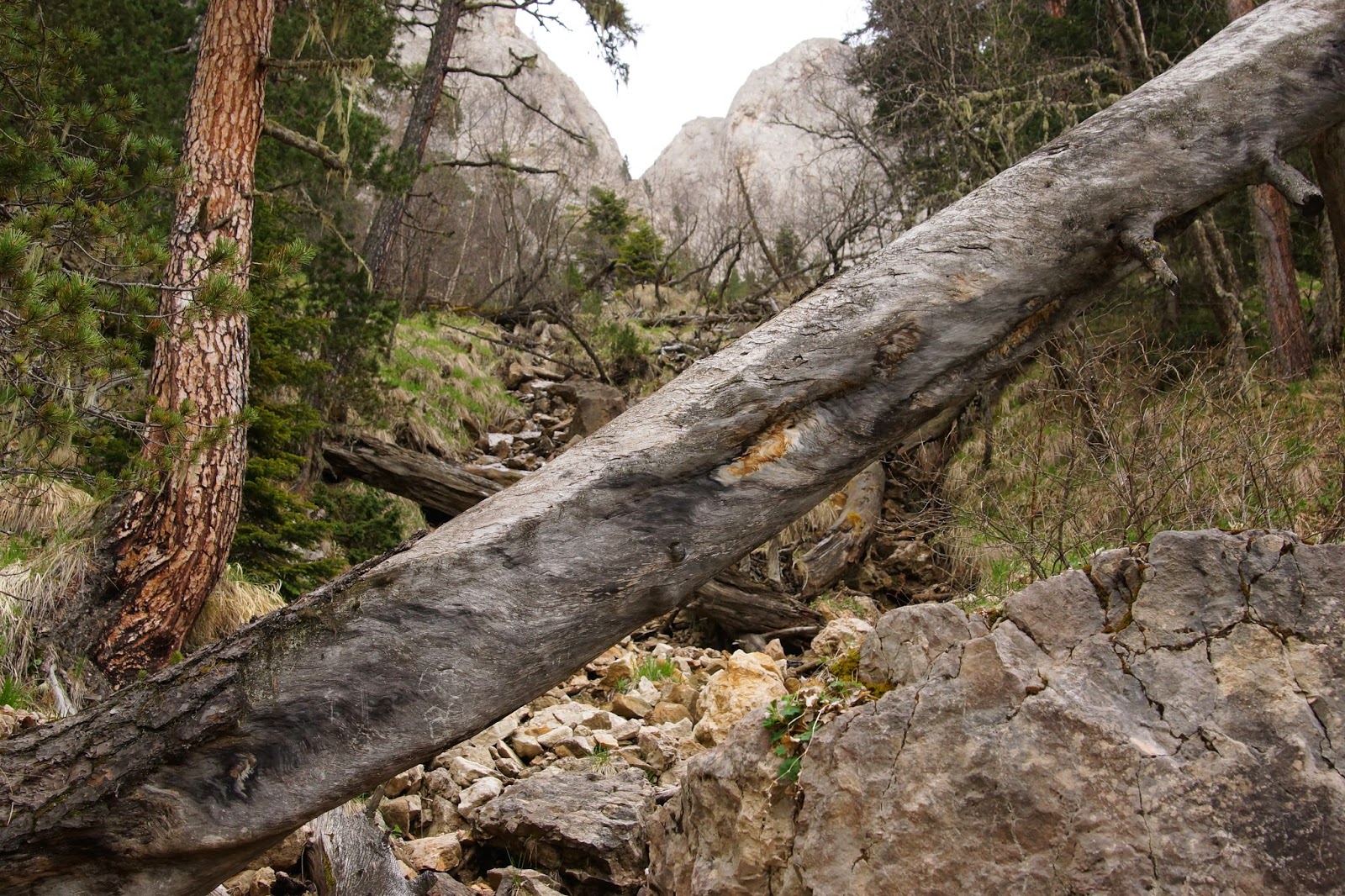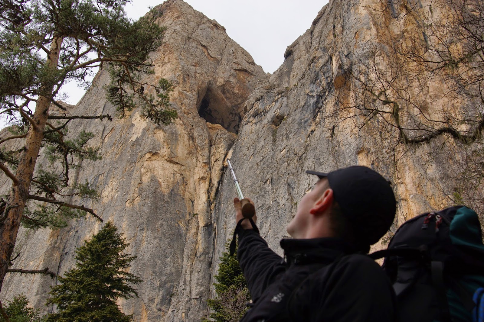 Недалеко от тропы на карте обозначена пещера, сворачиваем к скале поискать ее. Нашли довольно быстро, но вход был очень мал и мы бросили эту затею, тем более что приглянули место для тренировки.