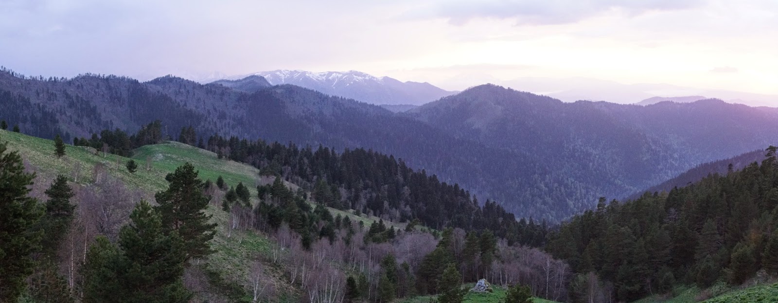 Так мы добрались до места где тропа уходила круто в гору, оставляя речку позади, и решили встать на ночевку т.к. вечерело.