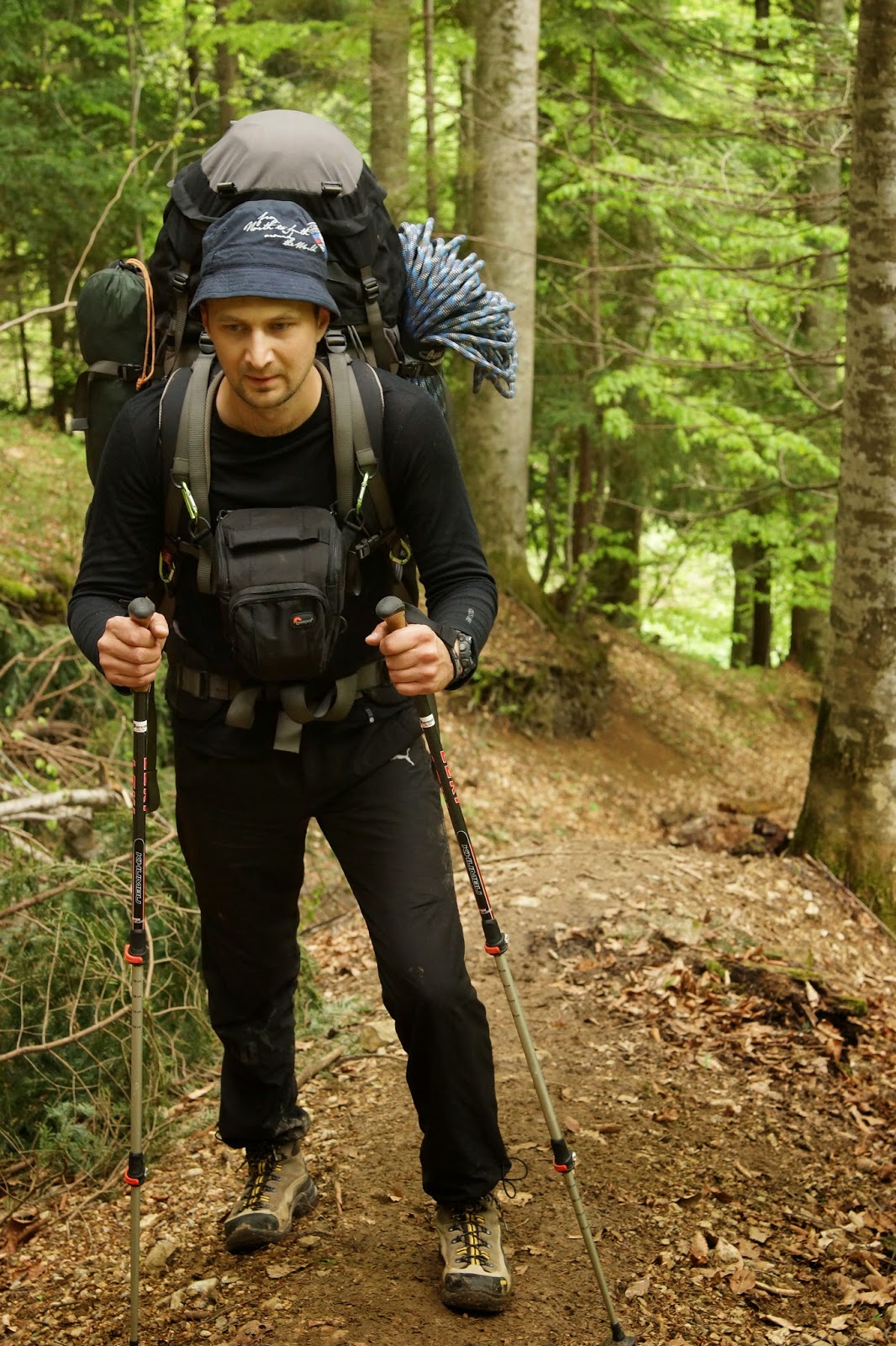 Утром спали долго, все-таки отдых)), поэтому вышли поздно. Дальнейший подъем до скалы Колокольня оказался достаточно крутым, особенно с весом наших рюкзаков.
