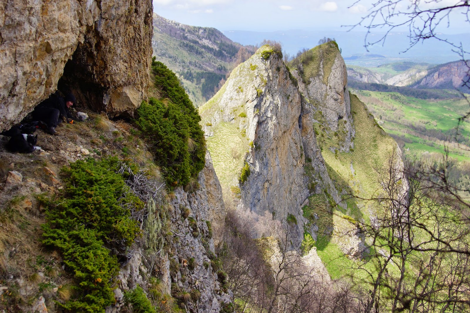 Немного обследовав местность нашли интересный грот с еще более узким входом в пещеру, имеющую сквозной выход на отвесе скалы в нескольких метрах от грота.