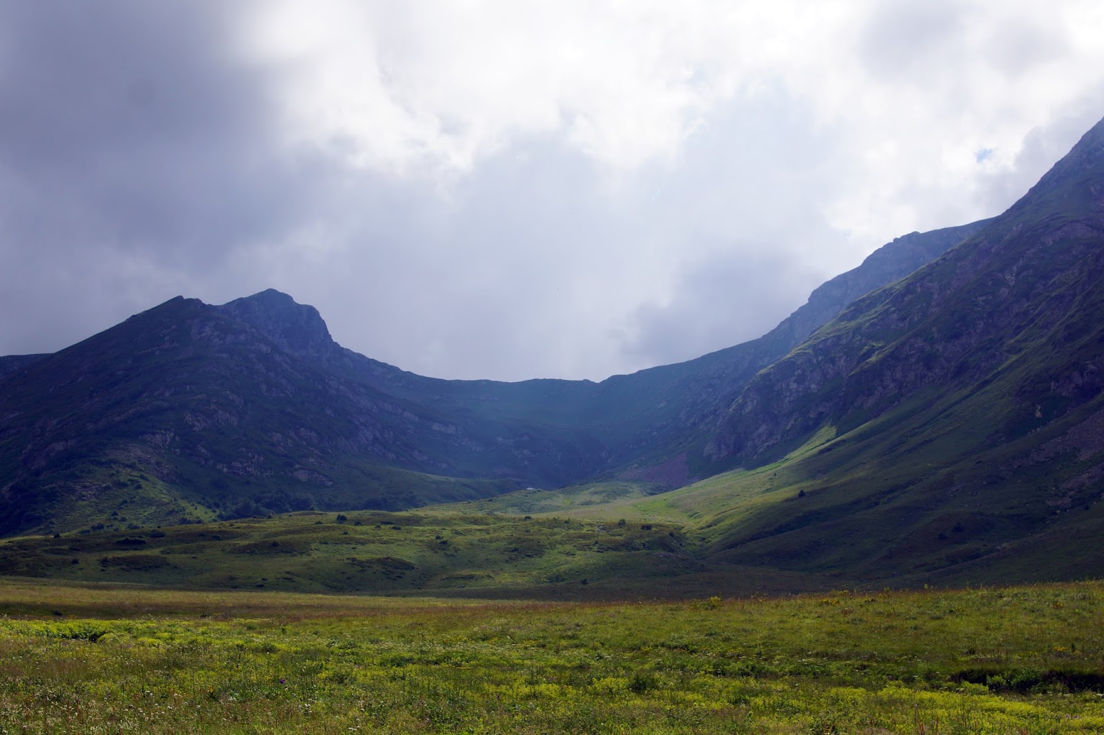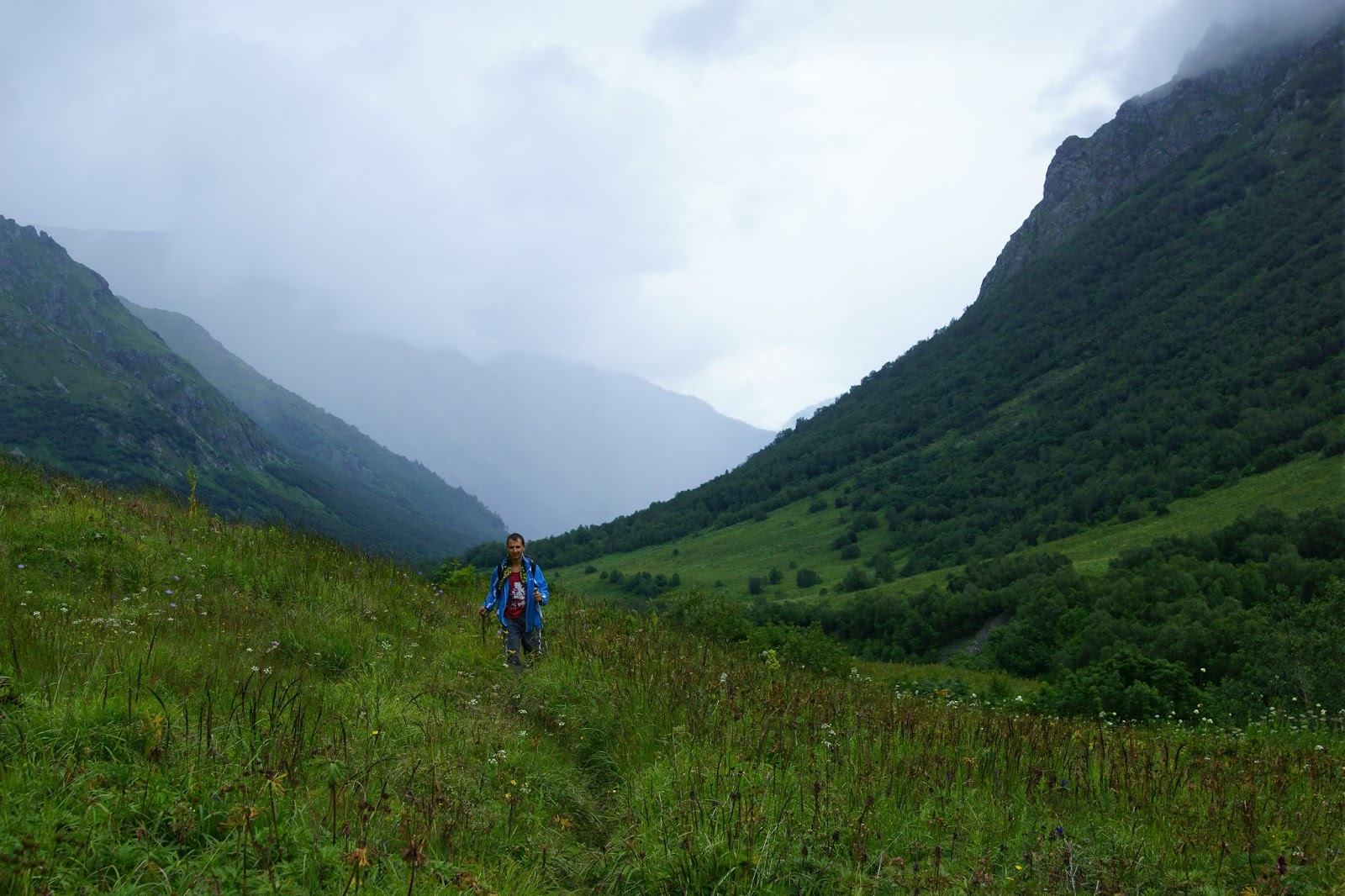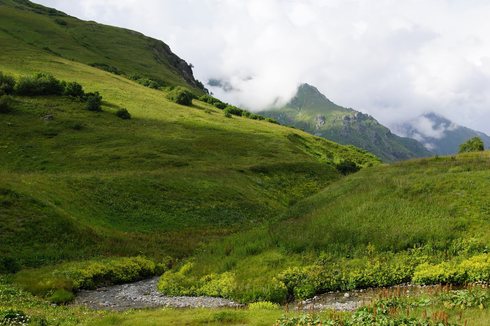 Подъем по пути к перевалу практически не заметен и лишь когда видишь, что речка течет уже в другую сторону (это копит свои воды Уруштен), понимаешь что прошел перевал.