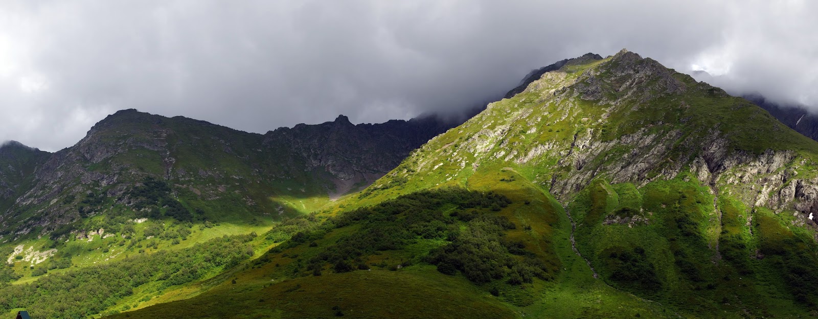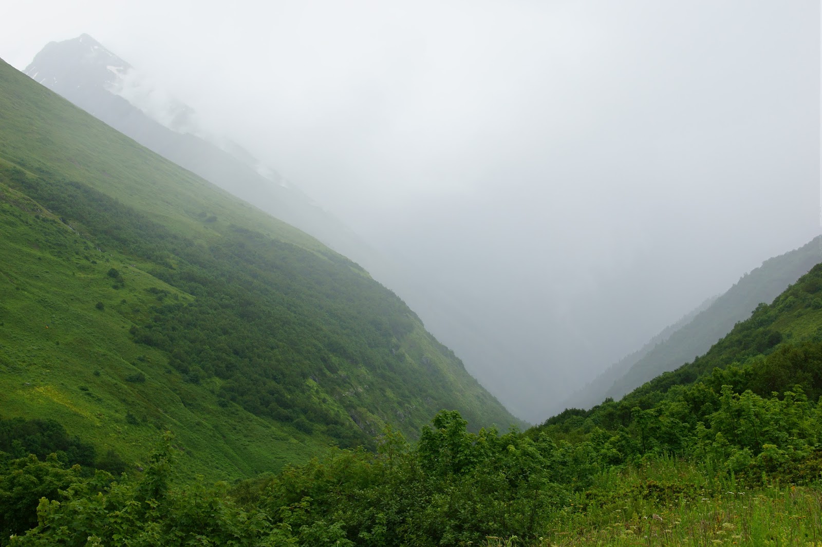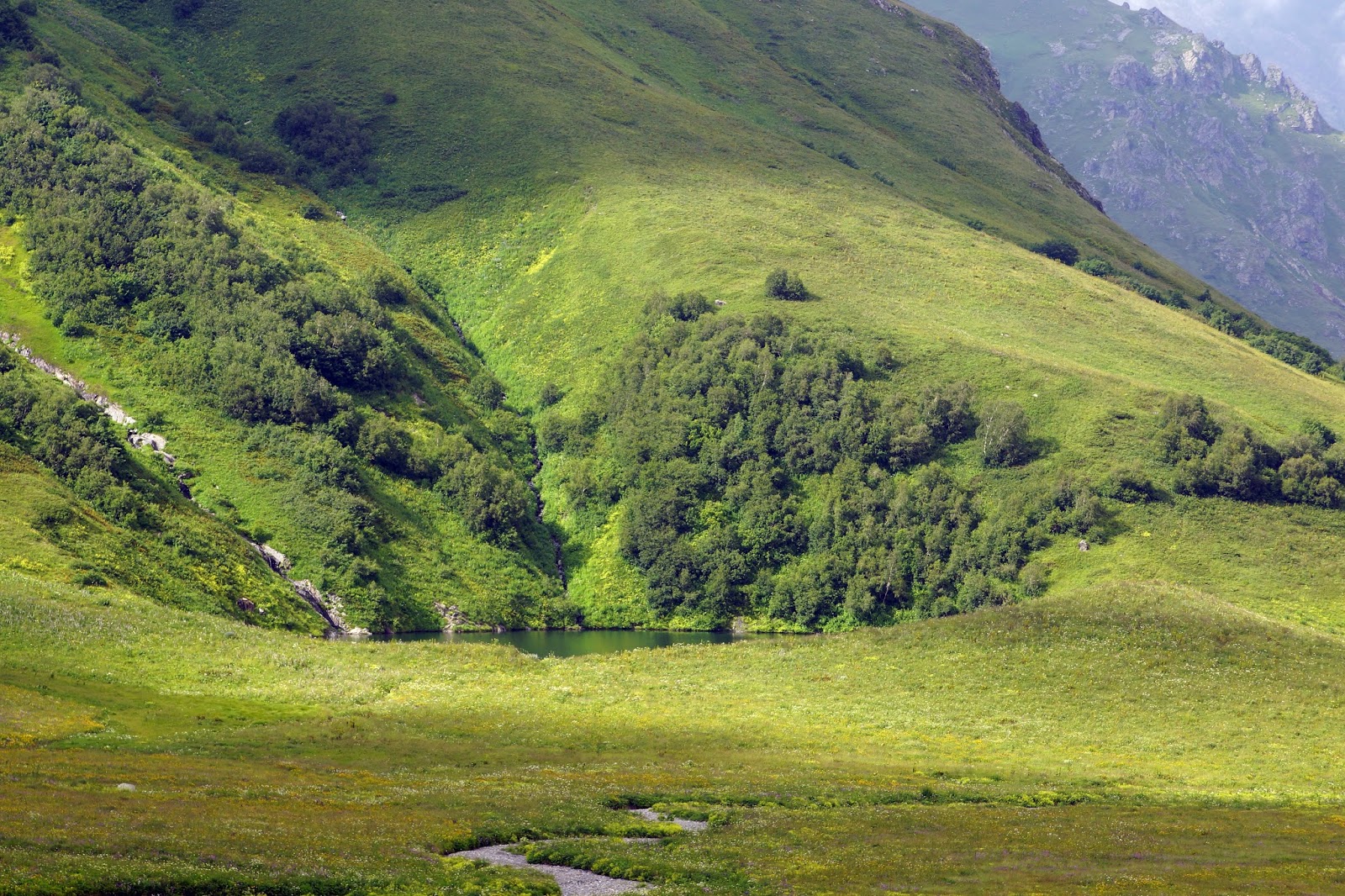 Подъем по пути к перевалу практически не заметен и лишь когда видишь, что речка течет уже в другую сторону (это копит свои воды Уруштен), понимаешь что прошел перевал.