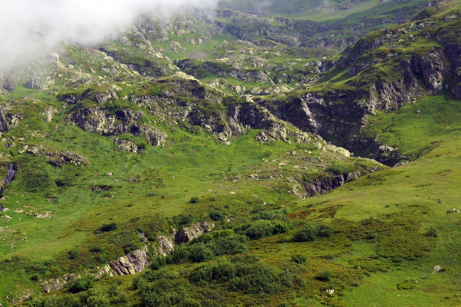 Далее тропа идет по дну широкой долины окруженной горными массивами. Вскоре встречаем речку Пслух уходящую вправо, ту да же ведет и ответвление тропы к Псеашхам.