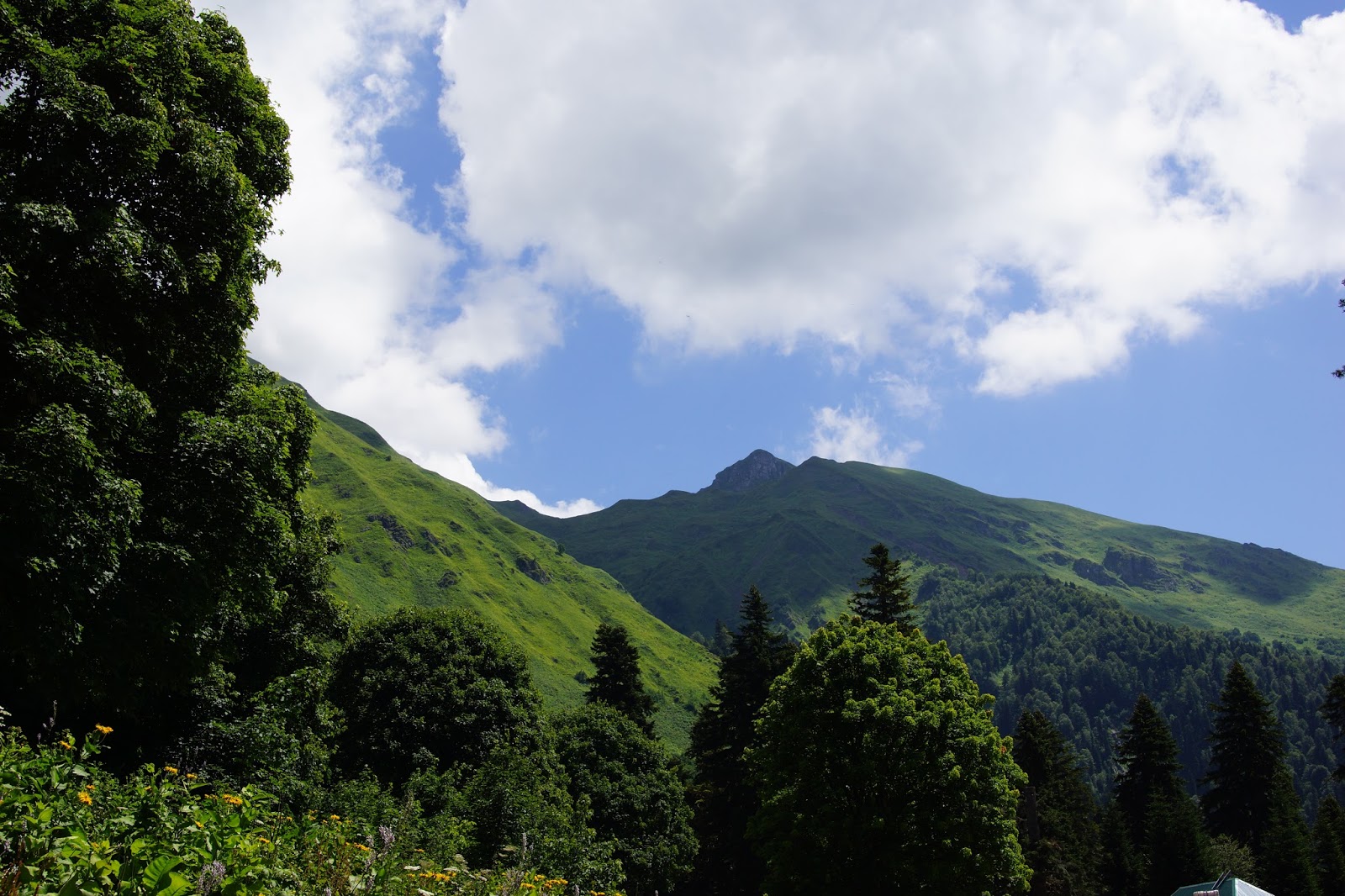С верхней станции Газпромовской канатки тропа забирает круто вверх, сначала лесом, а после косогором ведет альпийскими лугами...